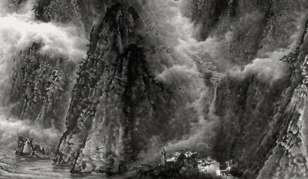 来支鋼氏の中国水墨画の無意識の意識は、まさに山水を超えた詩的な空間実験であり、「様式化」された画法を超え、自分らしいスタイルを作り出しました。范寛、米芾、龔賢、黄賓虹、李可染、賈又福などの山水画巨匠の長所を吸収し、「先駆」を重視しながらも、度を越えた抽象化を捨て、過去を引き継いで新しい未来を切り開きました。理性にコントロールされている「境地、気韻の壮大な美」に満ちています。