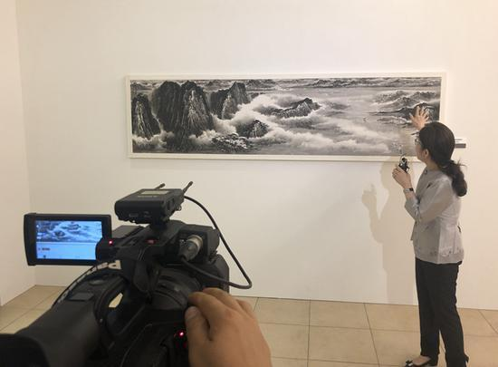 王少求(王少求美術館の館長):実は私たちは以前に来支鋼氏の絵を見たことがあり、とても印象に残っています。勢いがあり、壁一面を飾った絵でした。しかもこの絵は山の荘厳さと水の勢いが迫ってきて、すごい印象的でした。今日はたくさんの作品を鑑賞することができます。しかも以前に見た絵よりも巨大な絵があり、その作品への認識をさらに深めました。