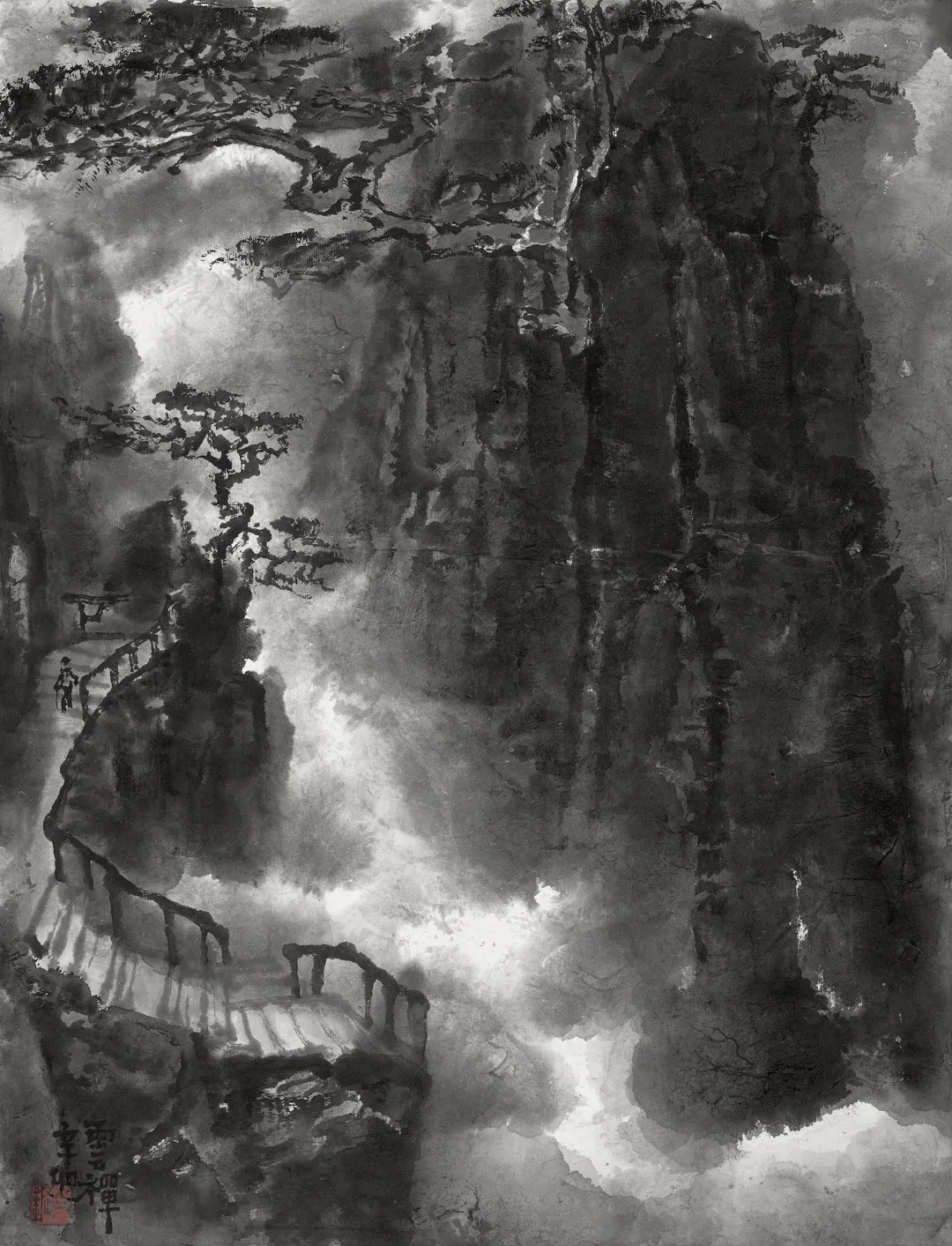 Lai's work is based on the logic of Chinese painting's rules of ink layout. Within this framework, he tries to pursue the original flavor of the ink image, which is the core of his artistic concept, with his unique accumulated-ink technique. Accumulated-ink is of extraordinary importance to him, as this is the way he has found to perfectly connect his aesthetic ideas with the real artistic needs. However, the display of ink images is not only based on techniques, but also inseparable from artistic thinking and logical planning. The ancients divided ink into five shades, but I believe there are far more than five shades, and even a rainbow of ink. Thick and light, deep and shallow, thick and thin, strong and weak, light and dark inks are even endowed with different tensions from the perspective of mechanics, not to mention the myriad changes in the manifestation of inner spirit and outward momentum. Lai changes the ink shades to highlight the texture, volume or sense of space of the object, enriching the picture from both visual and artistic perspectives. Thin white clouds like feathers or thick and dignified black mist, majestic mountains or deep and vast emptiness, his works fully demonstrate his skillful use of accumulated-ink techniques. He must have a deeper understanding of traditional Chinese philosophy, because he embodies the vigor and beauty extracted from the laws of nature in various intentions and gestures, which is visually impactful and profound. This seemingly random but deeply rooted painting technique contains the rich elements of traditional essence, cultural essence, Chinese spirit and national soul that Chinese painters believe in and are willing to express. No matter at first glance or careful observation, his works are undisputed, and properly reflect the essence and connotation of the corresponding painting themes and techniques. This is the way Chinese painting should be. And what I have seen is far more than that, but also how a Chinese painting painter successfully sticks to the purpose and attitude of Chinese painting and maintains its right way. In pursuing the innovation and development of painting, Lai uses the concrete color, shape and meaning of ink to show the scenery, inspiration and epiphany originating from nature. Therefore, his creative process and his works are always integrated with his own state of mind, showing his creative intentions from the outside and inside, and striving for the mutual understanding and harmony of existence and consciousness. In his clear sky, elegant clouds, rolling mountains, ethereal environment and magnificent imagination, there is the spirit of Chinese painting, the advantages of ink painting, and the harmonious aesthetics of the unity of appearance and interior, all of which belong to his Lai-style landscape. Such a transformation and breakthrough from the routine and stylized painting tradition is undoubtedly in line with the essence and law of the eternal innovation and development of art. The emergence of this new painting style that fully demonstrates the tension of ink and wash is ultimately derived from the development of the times and the progress of civilization, which has brand-new significance and is worthy of joy.