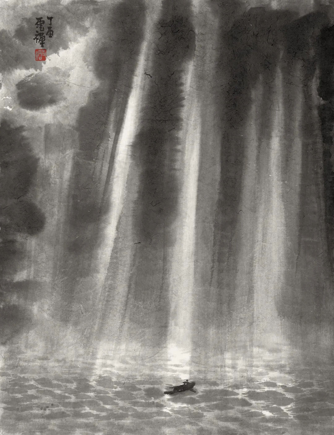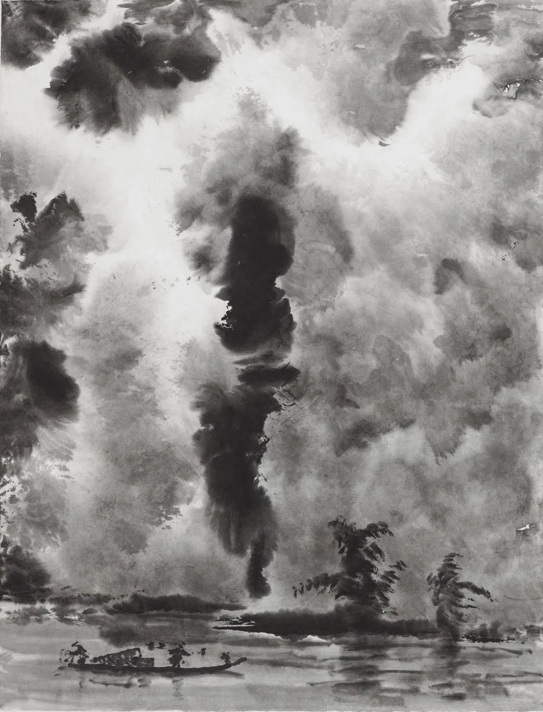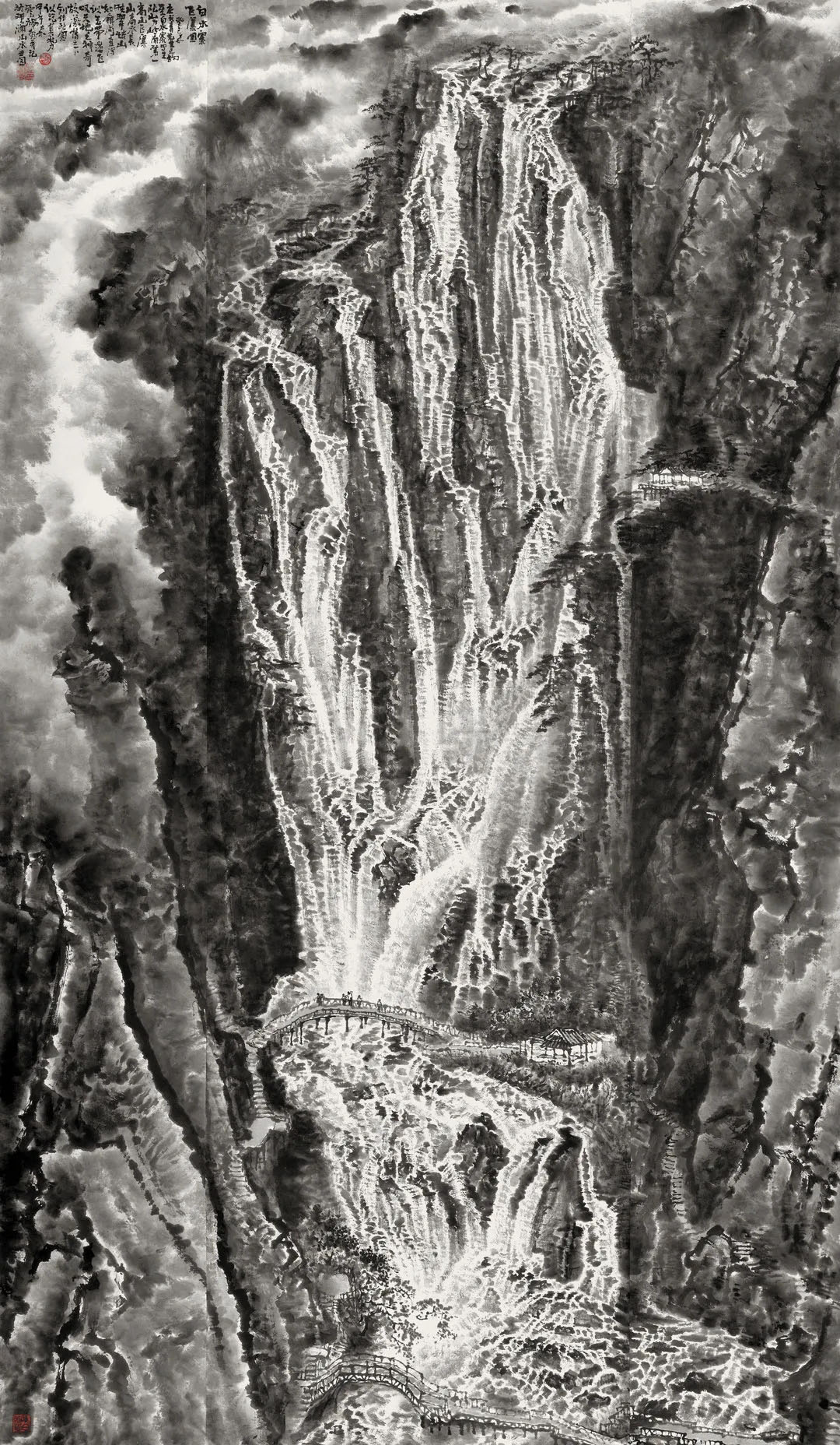 In Lai Zhigang's large-scale landscape paintings such as The Way with Art, The Way of Clouds and The Rise, he used bold and unrestrained brushwork to depict overlapping mountains and rivers, with clouds and mist shrouding them. On the whole, these paintings show a majestic beauty and a strong sense of layering. Subtle ink color changes and ingenious blank spaces weave the virtual and the real, not only emphasizing the majestic and magnificent mountains and rivers, but also externalizing the myriad changes of nature in the painter's mind. Lai’s control over the brush and ink is flexible, with interwoven ink marks of different shades and touches and expressive lines with appropriate density to effectively control the texture and rhythm of the entire painting. There is a strong personal touch to Lai's ink paintings of clouds and water. In his masterpieces such as Spring Tide, Sage’s Domain, and The Great River Going East, what you see is not only mountains, clouds and water, but more like a collection of natural objects with similar momentum. This is a magnificent ink movement played by him in black and white language, which arouses the endless imagination of the viewers.