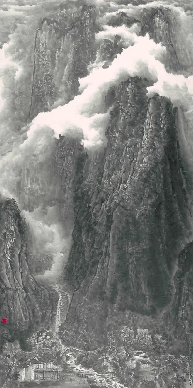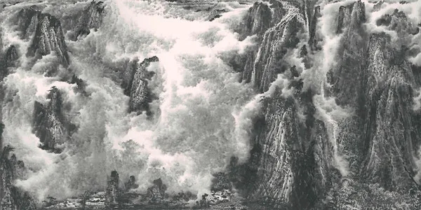 Lai Zhigang's fame in today's landscape painting community stems from his creative individual expression based on his tireless study of the essence of traditional painting. As Jia Youfu said, his works are explosive, tense and shocking, and are no longer limited by the size of the painting, which is very impressive. Lai Zhigang said that he always believes that Accumulated-ink is not only the best at expressing the Chinese landscape in terms of volume, quality, block surface, structure and spatial level, but also grand and magnificent, with the reality and possibility of infinitely expanding humanistic time and space.