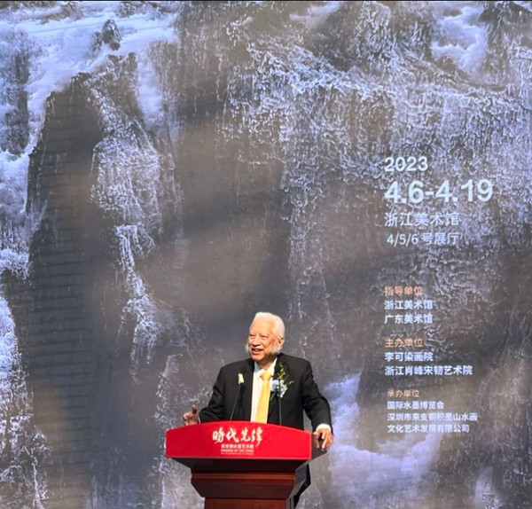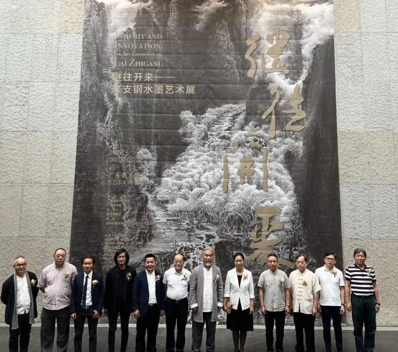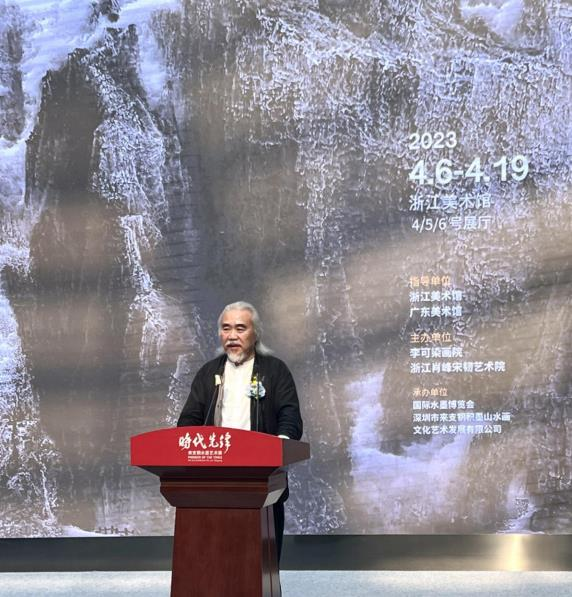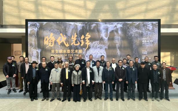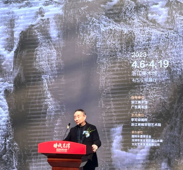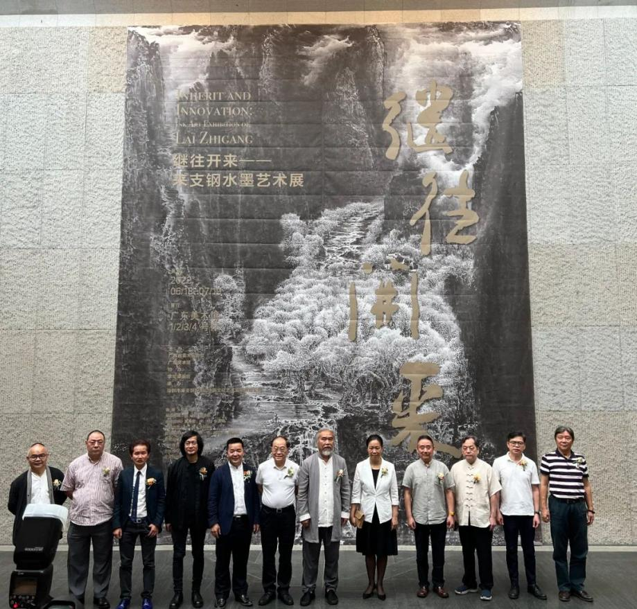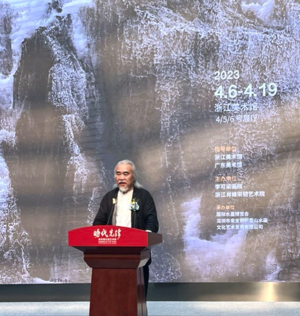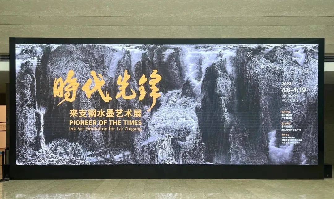On April 8, the opening ceremony of "Pioneer of the Times - Exhibition of Lai Zhigang’s Ink Art" was held at Zhejiang Art Museum. The exhibition is guided by Zhejiang Art Museum and Art Museum of Guangdong, co-sponsored by Li Keran Academy of Painting, Zhejiang Xiao Feng-Song Ren Academy of Art, and undertaken by International Ink Art Expo and Shenzhen Lai Zhigang Jimo Landscape Painting Culture and Art Development Co., Ltd. Qin Zhigang, Former Vice-chairman of the China Federation of Literary and Art Circles, Chen Jiayuan, Sheng Changli, and Sun Wenyou, Former Vice-chairmen of the CPPCC Zhejiang Province, attended the event.