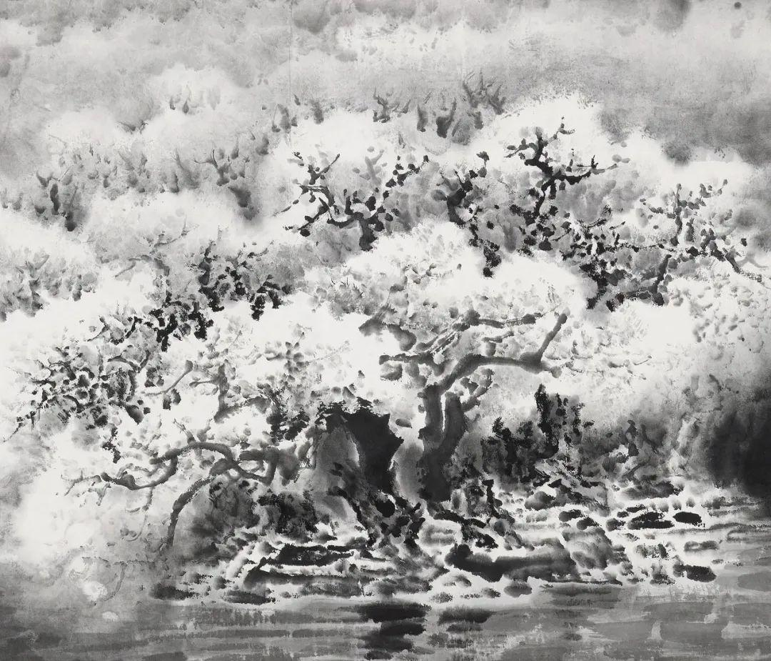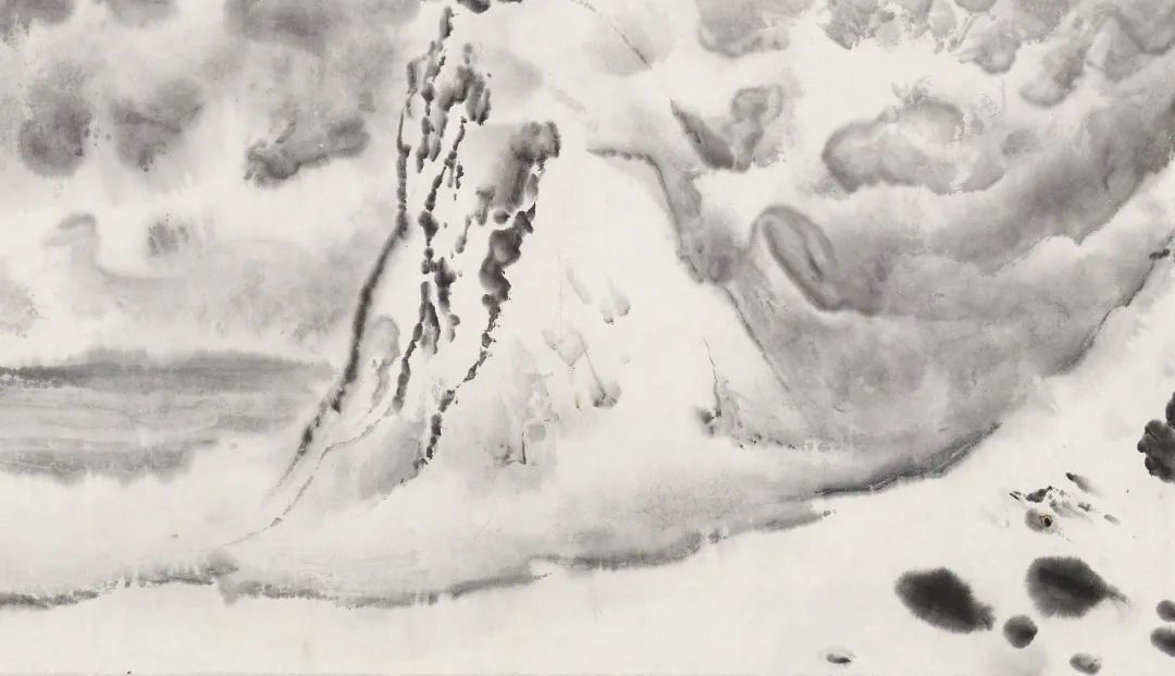 Wei Xiangqi (Associate Research Librarian of National Art Museum of China): In Lai Zhigang’s creation, we can see many new things, forming an immersive viewing experience or creative experience, with a feeling of entering the picture. Therefore, the whole process, experiential, and physical things shown in his works are what we value very much in contemporary ink painting theory. In the work Spring Tide, he relatively weakened a trace in Chinese landscape painting, and strengthened the use of brushes or physical and expressive things. In this way, he made this painting more able to connect with some new theories of contemporary ink painting or introduce some theories, thus broadening the interpretation space for his paintings. So in fact, there are expressions of modern ink painting in it.