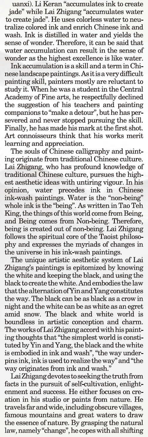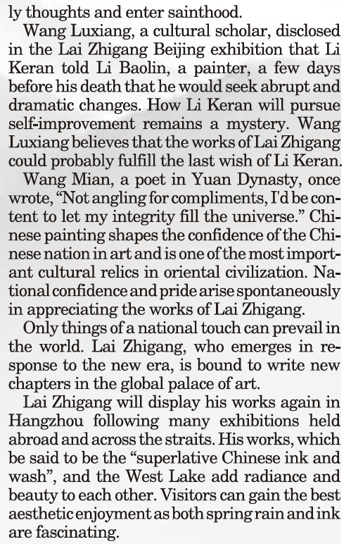 On the eve of the opening of the exhibition in Hangzhou, the Los Angeles Times published a special edition for Lai Zhigang’s ink painting