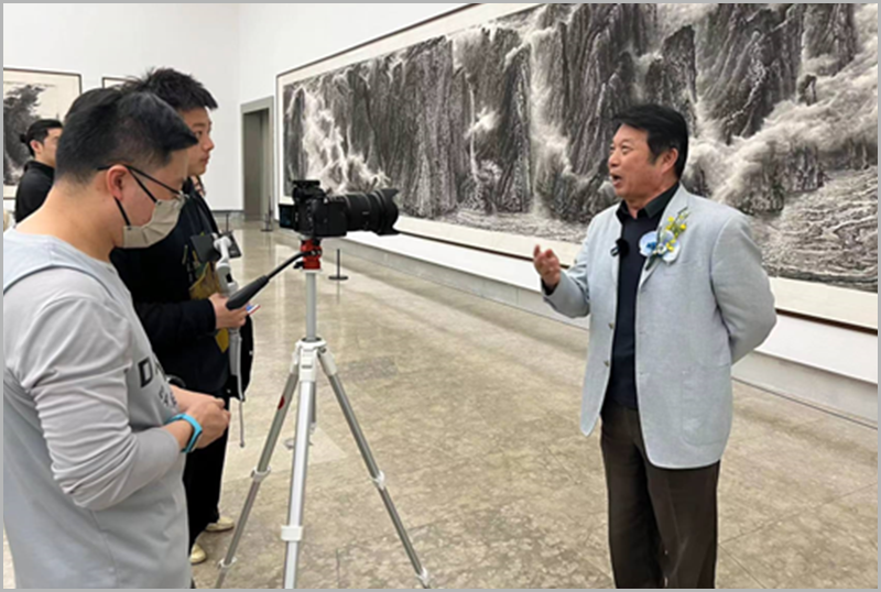 Qin Zhigang, Former Vice Chairman of the China Federation of Literary and Art Circles, is Interviewed by Reporters at the Scene