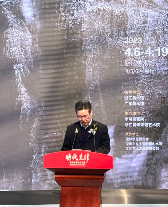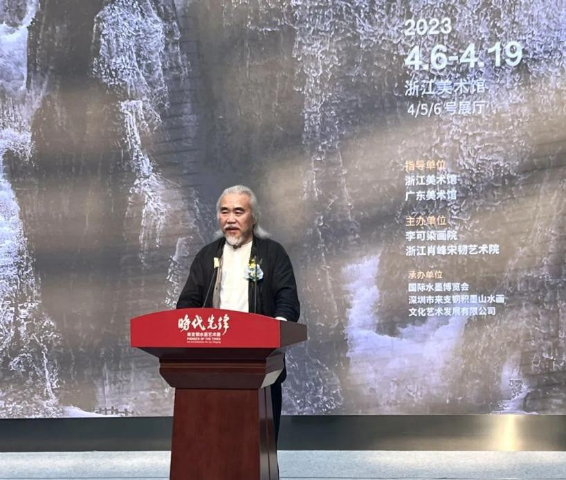 Guided by Zhejiang Art Museum and Art Museum of Guangdong, co-sponsored by Li Keran Academy of Painting, Zhejiang Xiao Feng-Song Ren Academy of Art, and undertaken by International Ink Art Expo and Shenzhen Lai Zhigang Jimo Landscape Painting Culture and Art Development Co., Ltd., "Pioneer of the Times" – Exhibition of Lai Zhigang’s Ink Art Exhibition was held in Halls 4, 5 and 6 of Zhejiang Art Museum from April 6th to 19th. On the afternoon of April 8, the leaders and guests gathered at the opening ceremony to participate in the grand event, and held an academic seminar on the same day.