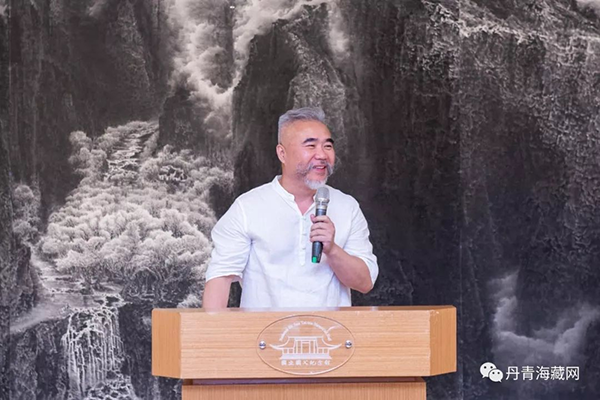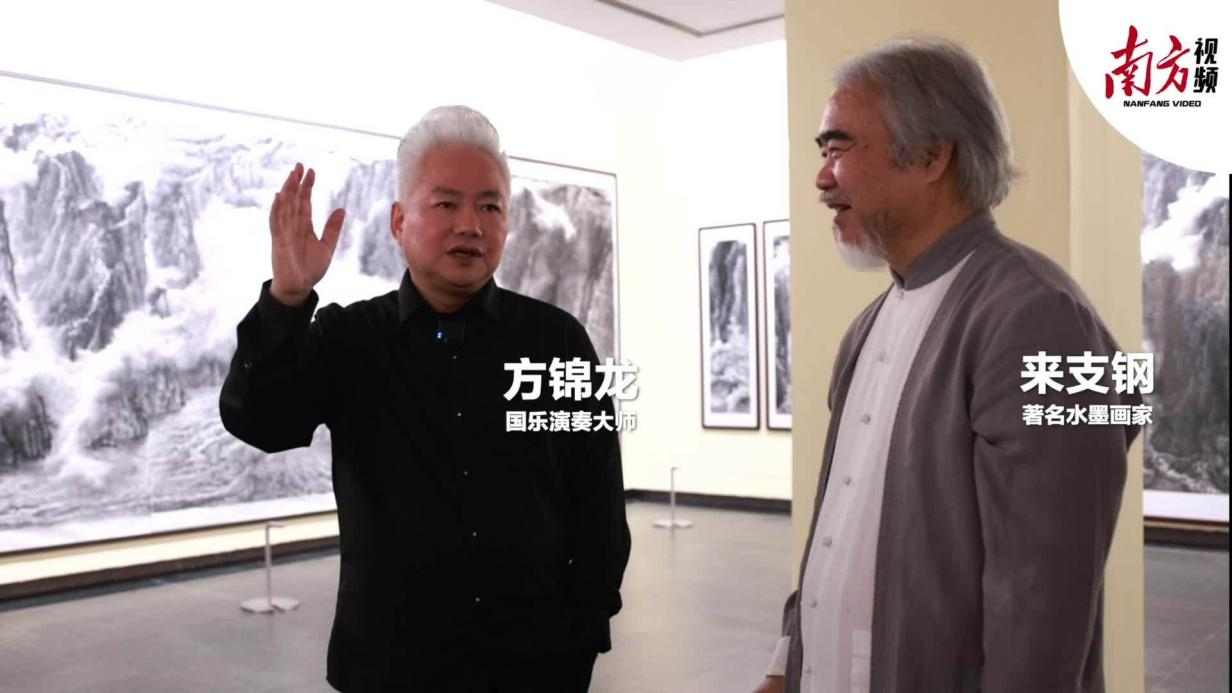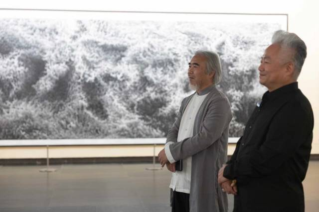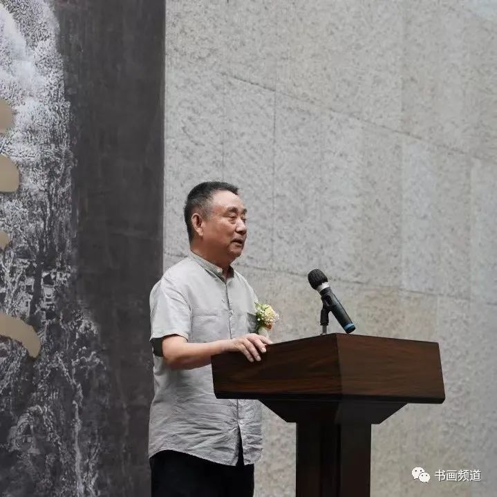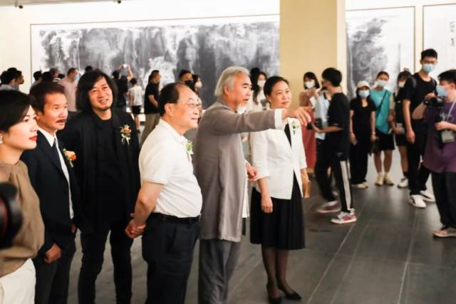Wang Shaoqiu (Director of Wang Shaoqiu Art Museum): We have actually seen Lai Zhigang’s paintings before, and they left a deep impression on us.I felt their momentum, and was amazed that a single painting could occupy a wall. And in this picture, the solemnity of the mountain and the momentum of the water are coming head-on, which is so impressive. Seeing so many works today, and there are even larger ones, I have a somewhat comprehensive understanding.