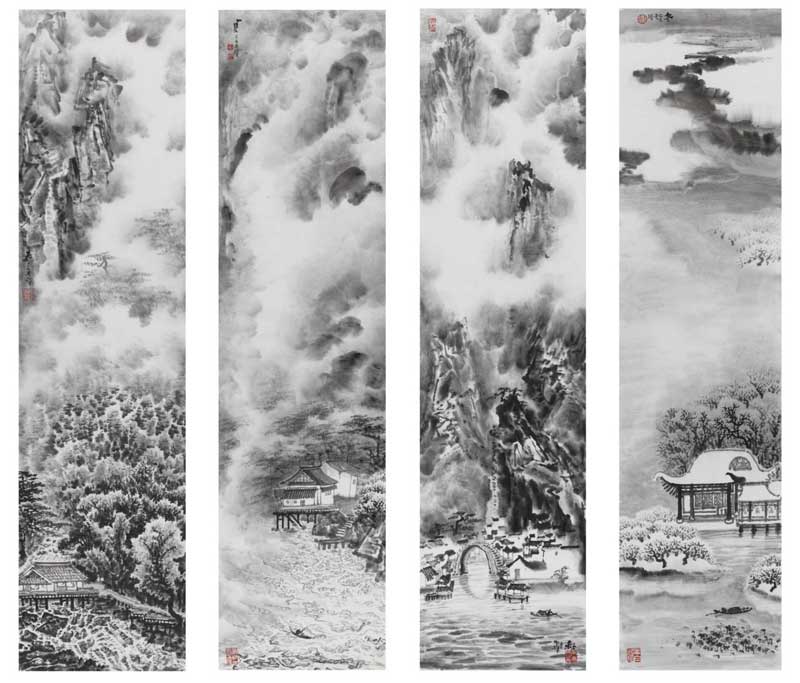 There are more than 70 masterpieces of Lai Zhigang on display in the exhibition, including his large-scale The Way with Art, long-scroll Dwelling in the Fuchun Mountains, The Road of Clouds, etc., as well as small-scale fine sketches.
